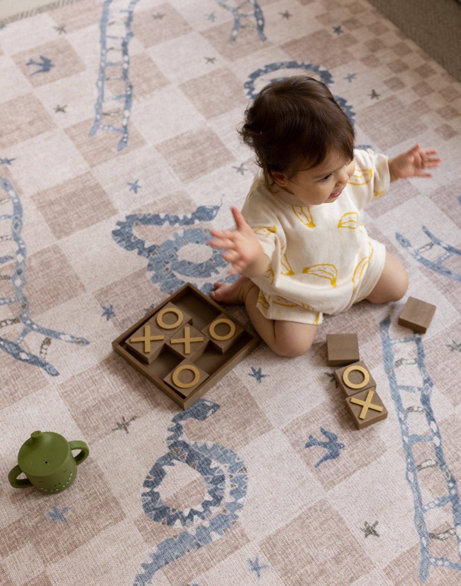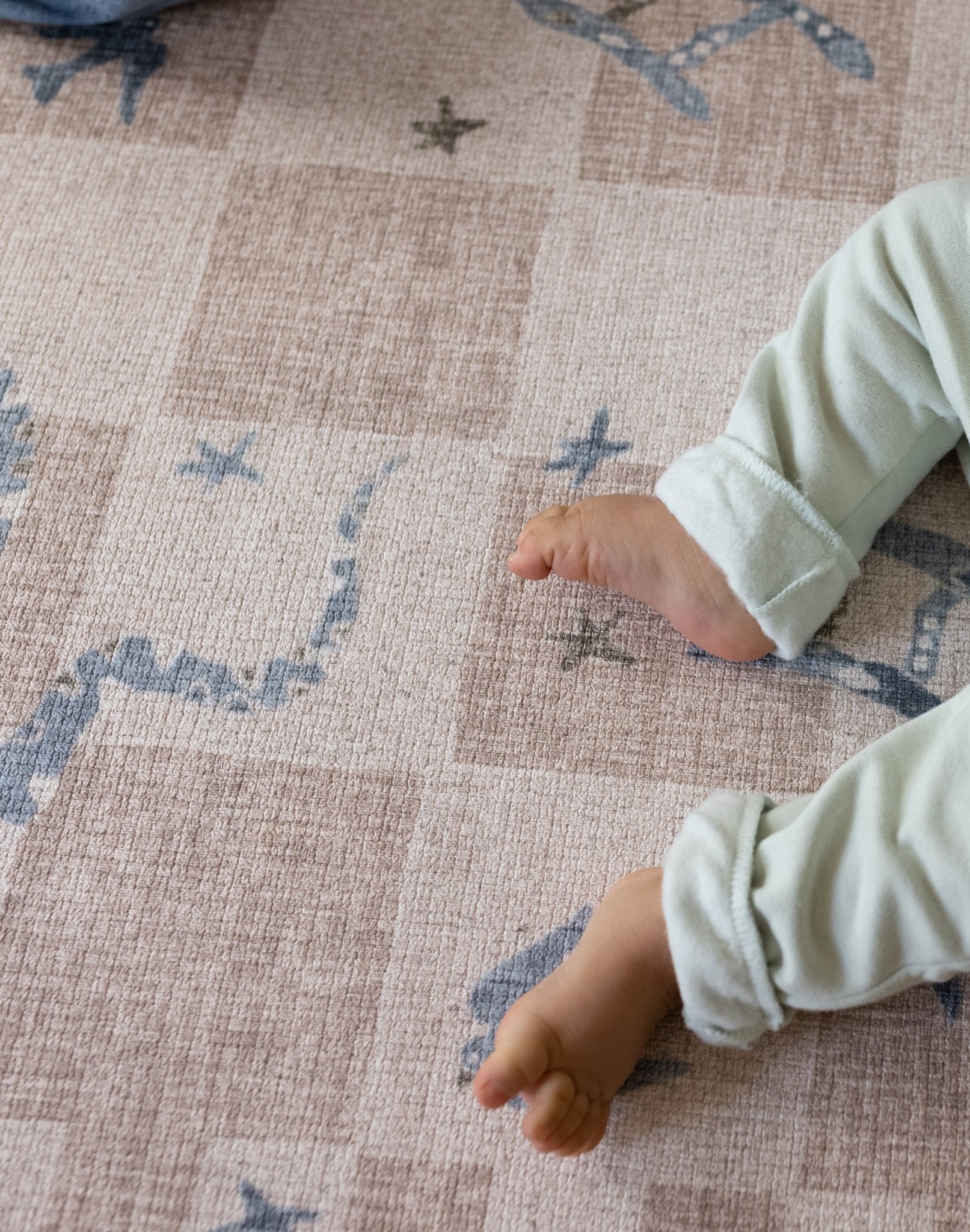 All of our one-piece playmats are 1.3cm thick + double-sided with beautiful designs that work for the whole family.