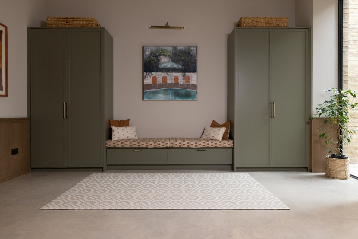 From our Woven + Wild collection, the textile-inspired Holbein playmat in muted tones, effortlessly elevates family interiors.
