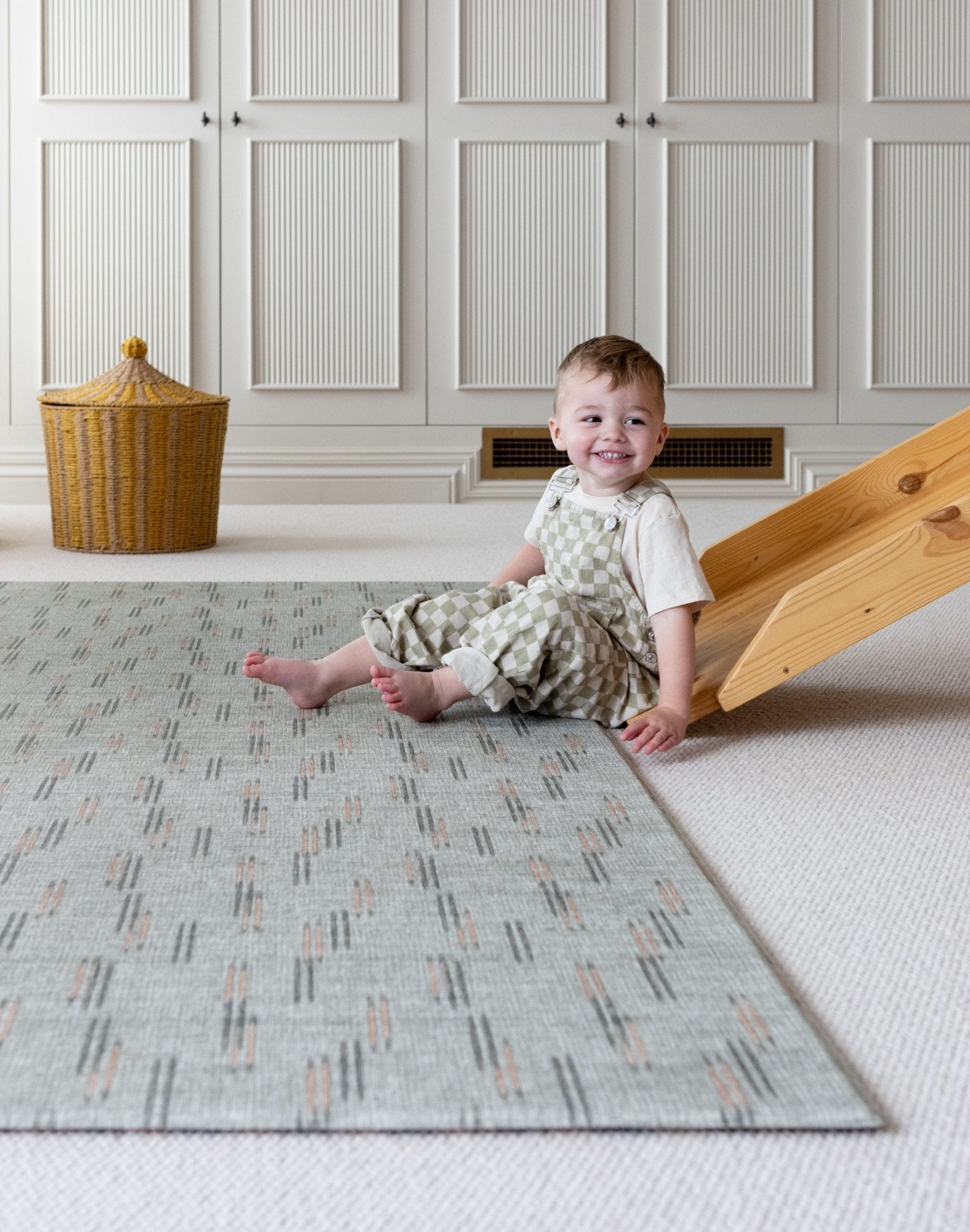 Our signature Kilim playmat collection is inspired by timeworn rugs and are ideal for sitting as a rug alternative in the home. From a creamy, dove grey Globe Trotter to a deep, midnight teal of the Wanderlust, the collection of six Kilim wipeable playmats has an option for every home.