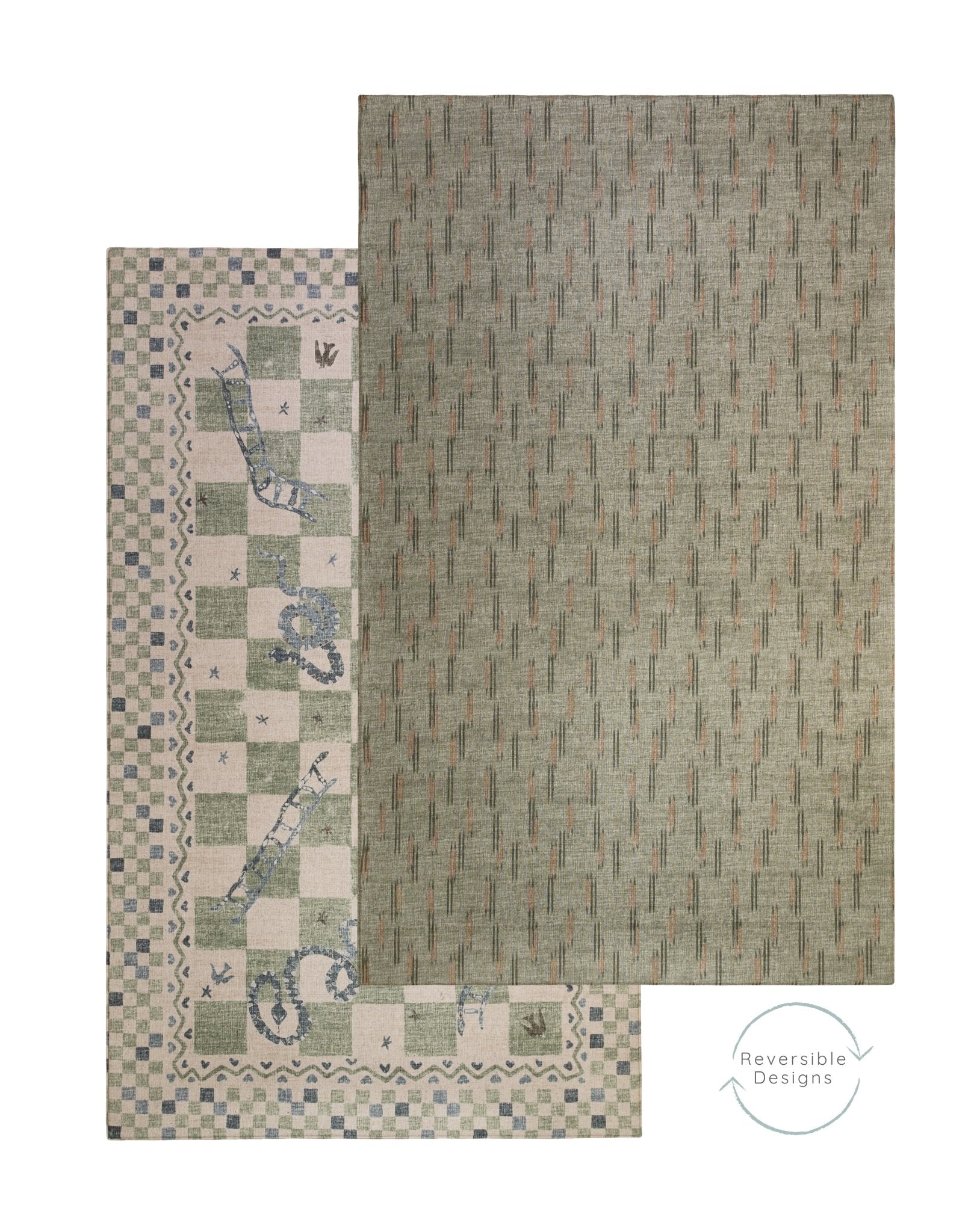 The Ludo comes to life in modern shades of thyme and deep olive, balanced with an accent of warm apricot